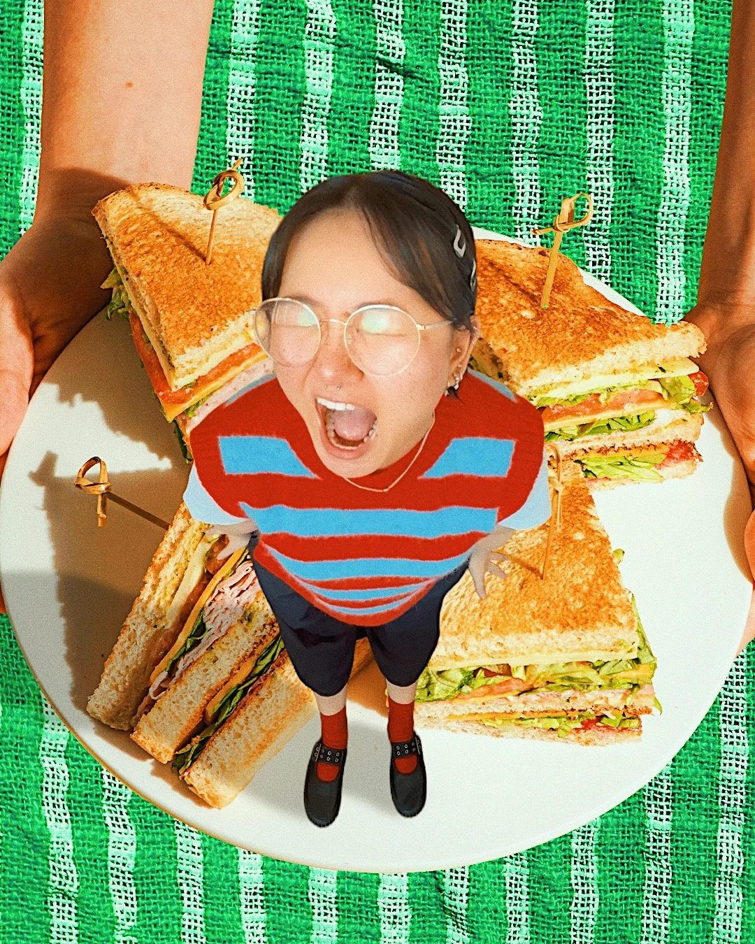 I make self-portrait edits and collages as a way to showcase my creativity and what is going on inside that weird little noggin of mine. I take all of my photos on my iPhone and I edit them in Photoshop and Procreate.